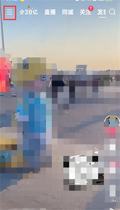 1、打开快手软件,然后点击左上角的三条横线功能,如图所示。