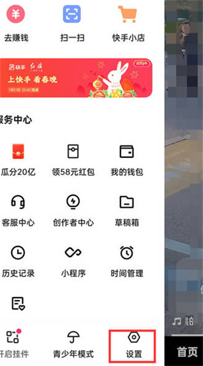 2、进入菜单之后,点击下方的“设置”功能,如图所示。