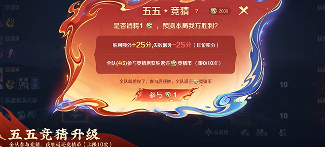 排位竞猜升级:全队竞猜获胜最多可返还竞猜币10次。