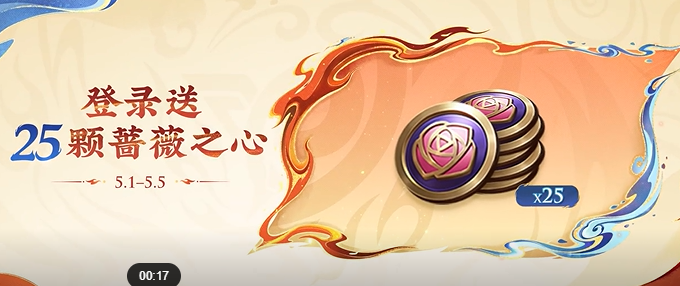25颗蔷薇之心,5月1日登录即得,换取稀有皮肤。