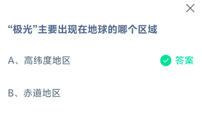 “极光”主要出现在地球的哪个区域?这是今天《支付宝》每日一题的问题,相信我们很多用户都很想知道这个问题的答案是什么?这么一个可以领取饲料的机会相信我们很多用户都不想错过,这里指玩手游网的小编为你带来了2026《支付宝》4月22日每日一题最新答案介绍(1)的全部内容,喜欢的小伙伴欢迎点击进入看看吧。
