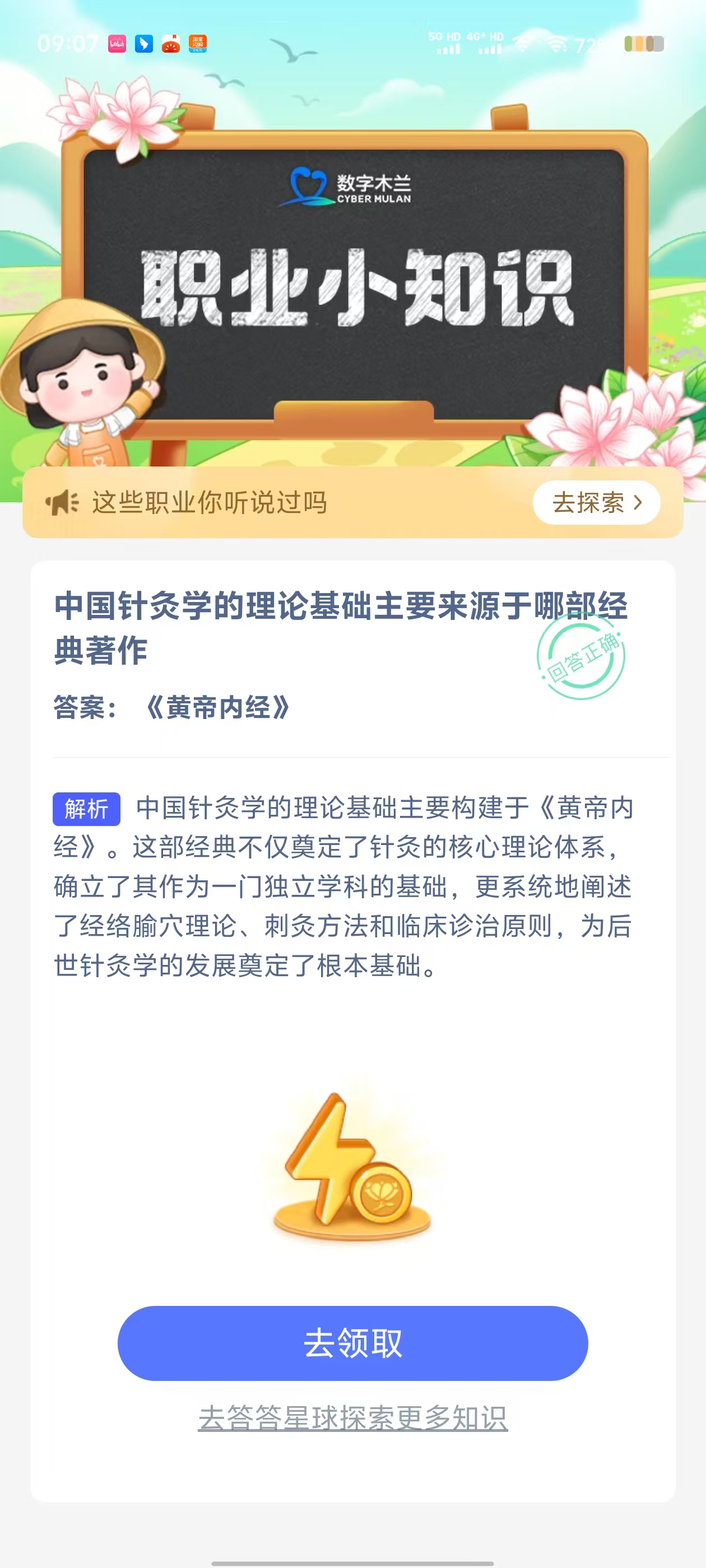 2、在【职业小知识问答】对话框中,点击【去完成】进入答题页面;
