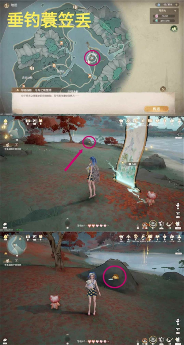 位置:传送后上楼梯,来到小池塘边的石头上,静享片刻宁静。