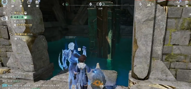回到藏兵城渡石后,长按任务键继续主线追踪。周围有多个关卡可挑战,按指引前进即可。