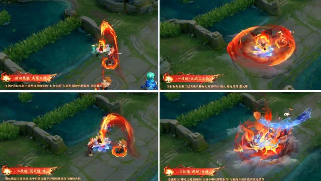 技能特效释放期间都融入了莲花元素,加入了火焰元素,看起来还是具有较强的打击感。