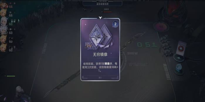 在战斗中,玩家通过消耗能量生成镜像牌,打出后会自动变为上一张使用的角色卡。这个技能的优势在于能显着降低角色卡的获取成本,加速关键英雄的召唤。