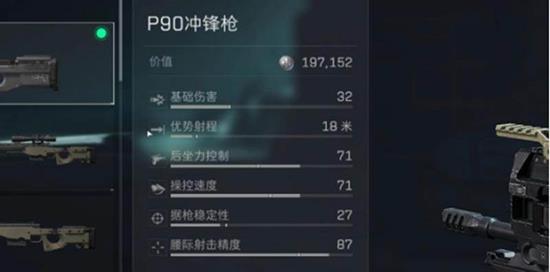 P90拥有71点后坐力控制和32点基础伤害,在15米内射击无需开镜,适合快速移动中的作战需求。