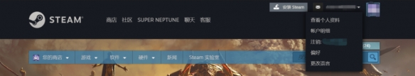 1、登录您的Steam账户,点击页面右上角的【账户明细】;若使用客户端,也可直接点击【查看我的钱包】。