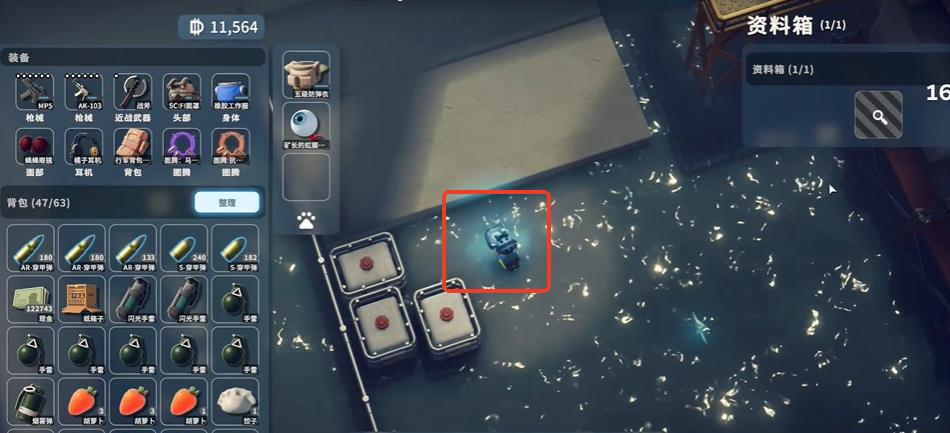 4、接着沿着狭窄的通道一路深入,穿过散落的设备与杂乱的电缆。最终,在区域深处的资料箱中,你将发现那份珍贵的——沙鹰图纸。