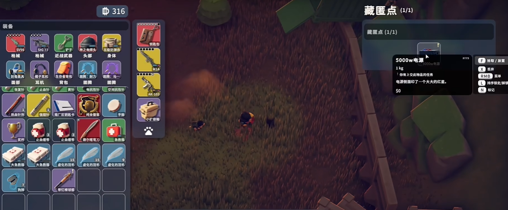 4、拨开那些遮掩的草叶,你将看到那件被遗忘已久的珍贵物资——超级电源。