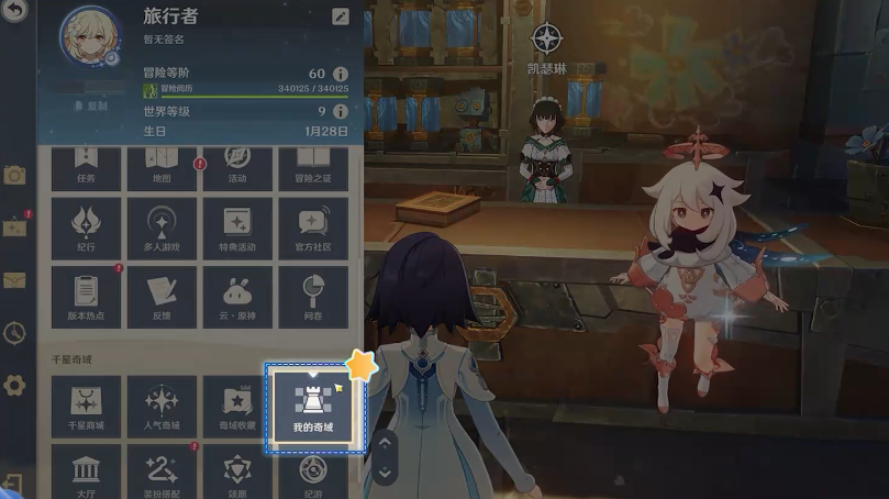 1、点击左上角的蒙派图标,接着下划点击“我的奇域”。