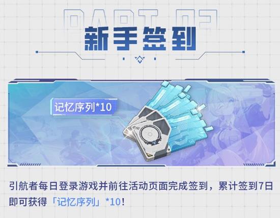 每日登录游戏并前往活动页面完成签到,即可领取丰富奖励。累计签到7日,即可额外获得「记忆序列」*10,为你的初始旅程积蓄更多力量。