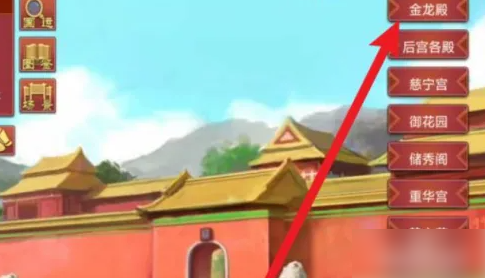 在《皇帝成长计划2》的主界面中,首先打开【后宫】选项,然后在后宫界面中找到象征至高权力的【金龙殿】入口。