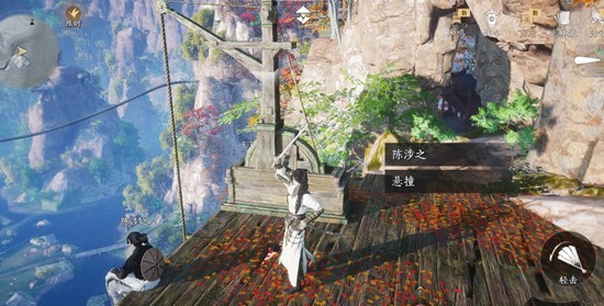 P2位置:找到NPC曹工匠对话后,镜头左上查看悬臂上的陈涉之。