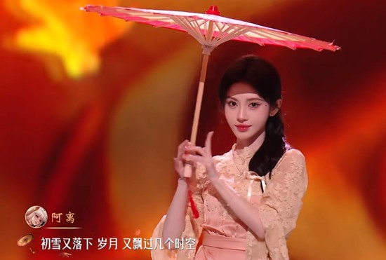 配合灯光与舞美,她的表演宛如将观众带入梦幻的古代世界,执伞起舞的身影如画中人,令人印象深刻。