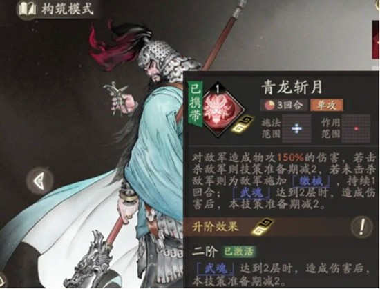 技能搭配:重点升级暴击与攻击类技能,核心技能如“振威华夏”和“青龙斩月”需优先培养,以确保关羽在战场上拥有强力输出能力。