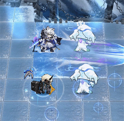 在场时,会在待部署区生成 “风雪之眼” 并根据部署费用自动排列干员。位于“风雪之眼”左侧的干员与自身的初始技力提升,下次部署时间减少,让阵容运作更加高效。