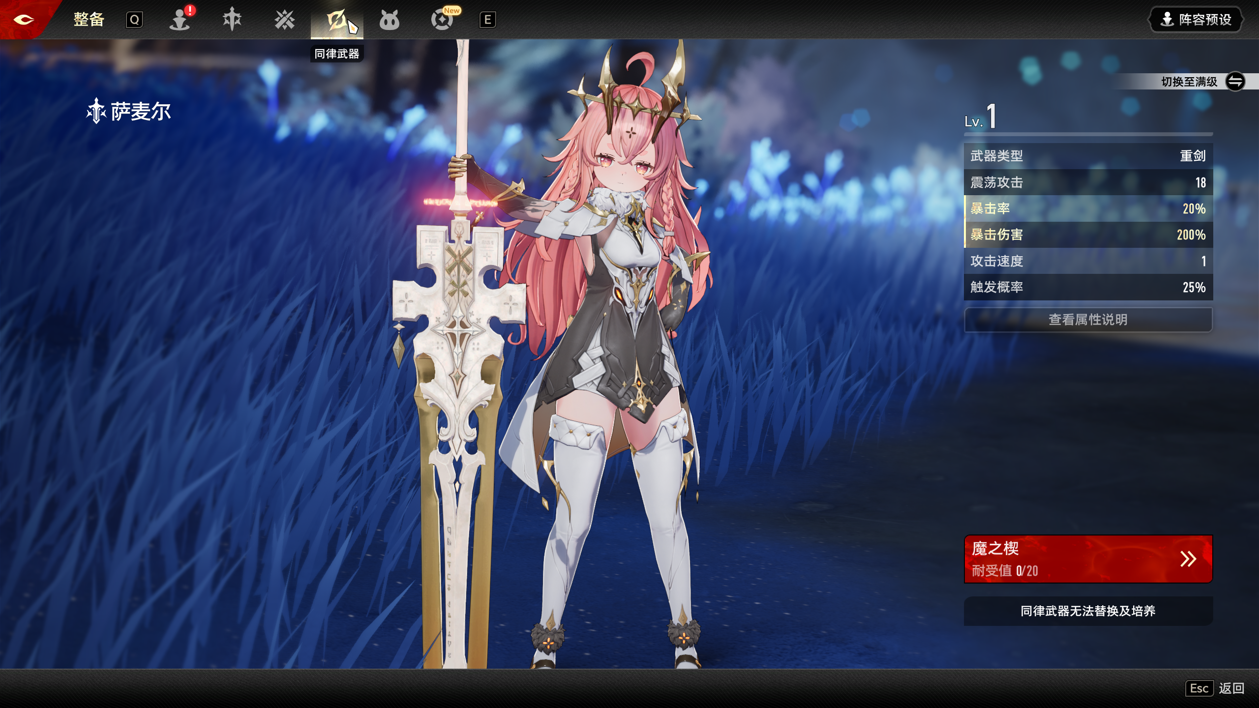 同律武器的魔之楔需要单独搭配,使用时务必确认角色是否具备该武器类型