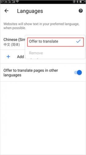 7、在弹出的选项中选择Offer to translate(提供翻译)功能,即可将浏览器界面显示为中文。