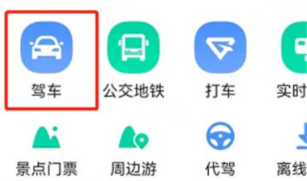 打开高德地图,点击上方的驾车功能。