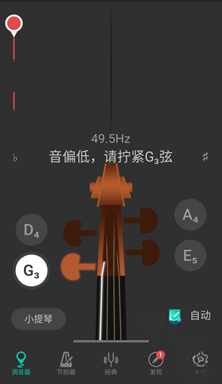 4、提供标准的G、D、A、E音高演示,帮助用户通过听觉判断音高的准确性。