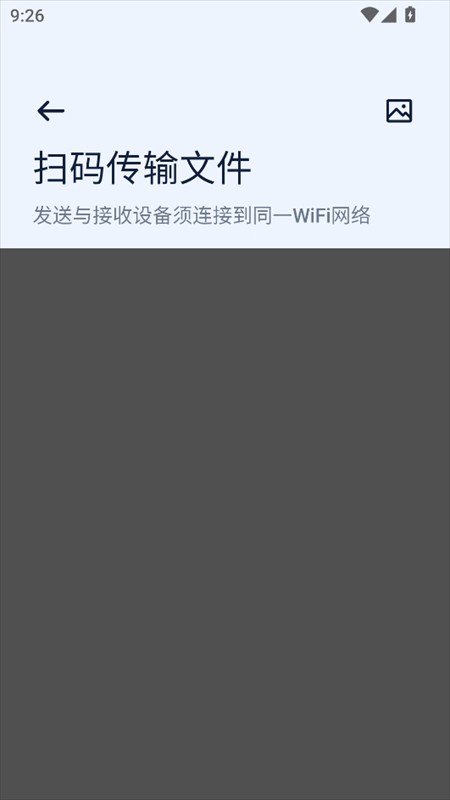 2、在这里,我们可以将发送和接收设备连接到WiFi网络,通过扫描代码来传输文件。