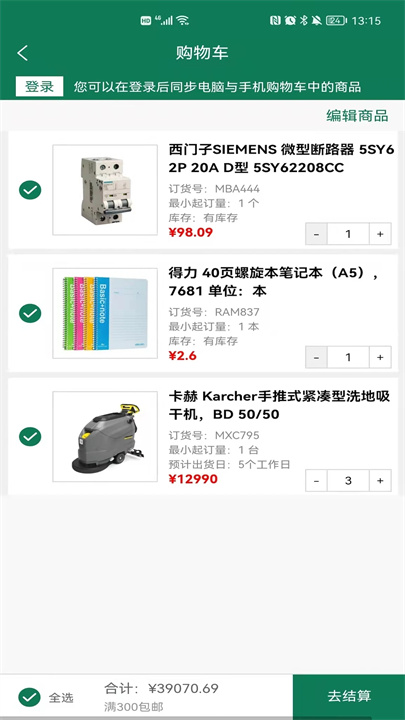 2、可将多个商品加入购物车,统一结算。它支持批量订购和选择付款。