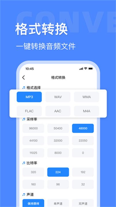 4、支持MP3、WAV、AAC、FLAC、M4A等多种格式的相互转换,转换效率高,音质稳定。