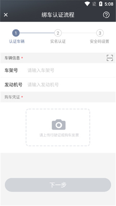 4、按照提示填写车辆信息和个人资料即可完成绑定;
