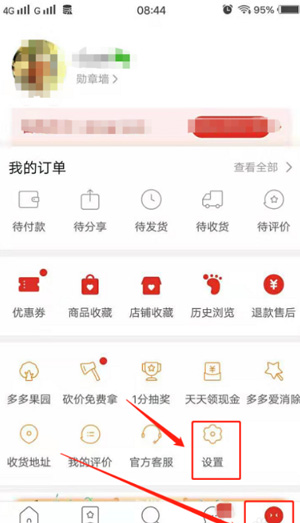 1、打开拼多多,点右下角 “个人中心”,再点击 “设置”。