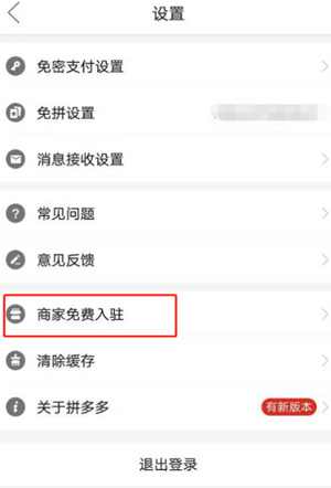2、在设置界面选 “商家免费入驻”,点击进入。