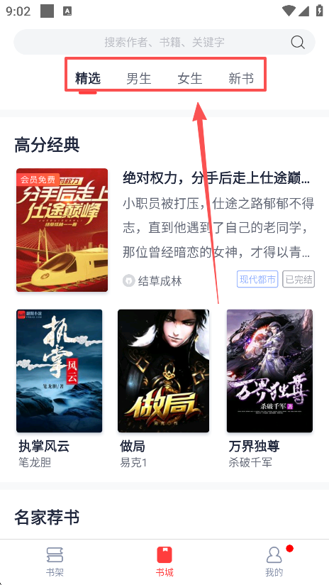 2、通过顶部的栏目可以轻松切换不同的小说分类。