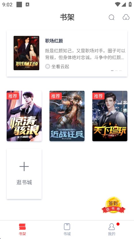 1、打开青趣小说软件进入书城,就可以浏览到各种类型的小说资源。