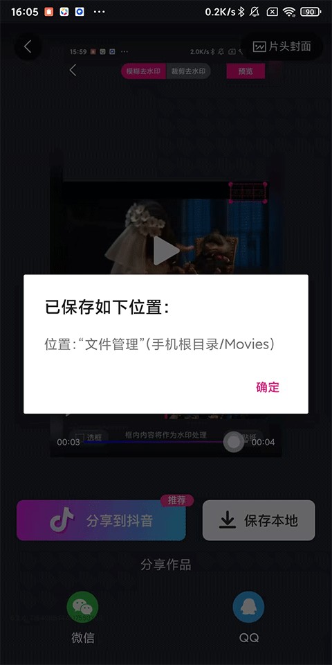 4、视频已成功保存到指定位置,点击【确定】完成操作;