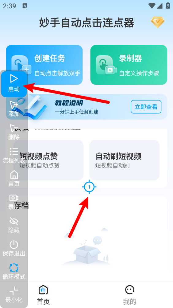 8、最后将图标拖动到所需点击的位置,点击“启动”即可开始执行自动点击。