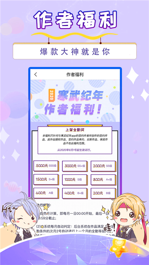 1、寒武纪年小说软件中的热门小说榜单,包括周榜、月榜及综合榜,助您发现最新精品。