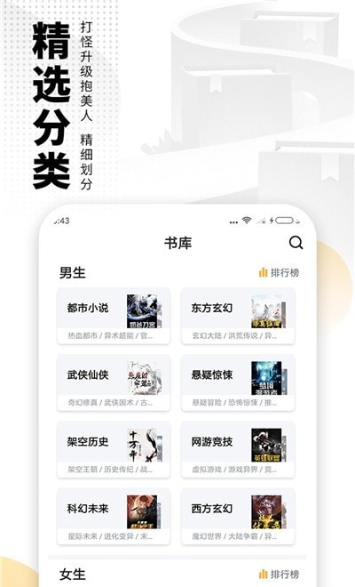 2、也可以进入分类专区,根据自己的兴趣挑选喜欢的小说题材;