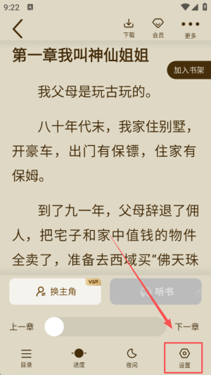 3、爱看书免费小说阅读器找到并点击“设置”按钮,进入个性化配置界面,根据自己的阅读习惯和喜好进行调整。