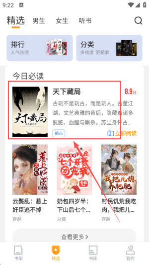 小书阁纯净版带来了绝对纯净的小说阅读方式,海量的精品小说资源让我们所有用户都可以轻松在线阅读到自己喜欢的小说资源,而且这里有着多种不同类型的小说让我们可以随意的切换选择,不管是男频还是女频小说都可以轻松找到,同时提供了人性化的小说听书方式,各种精品小说可以通过听书来阅读,想看更多好看小说的小伙伴欢迎点击下载下来吧。