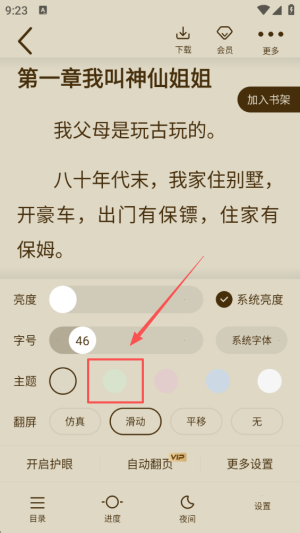 4、选择喜欢的阅读背景颜色,设置完成后将为您带来更舒适的视觉体验,让阅读过程更加轻松愉快。