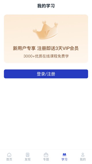 5、进入“学习”频道前,需要先登录或注册账号才能开始学习。
