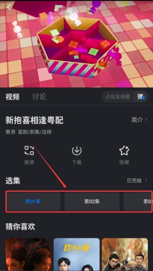 4、如果是多集内容,可以在播放页面使用“选集”功能,自由切换不同剧集进行观看。