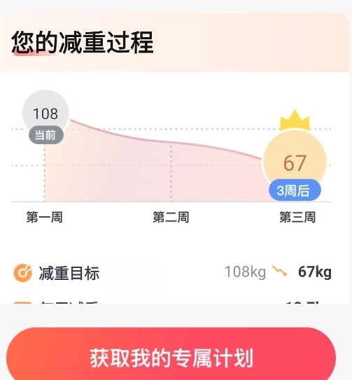 3、随后APP会为你提供一个非常适合你的减重计划哦。