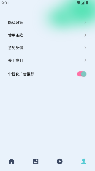 4、点击“我的”,可以查看隐私政策、使用条款、意见反馈以及关于我们等信息,方便获取帮助。