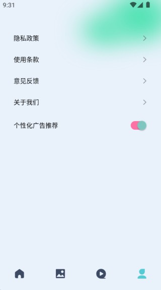 4、点击“我的”,可查看隐私政策、使用条款、意见反馈及关于我们等信息,方便获取帮助。