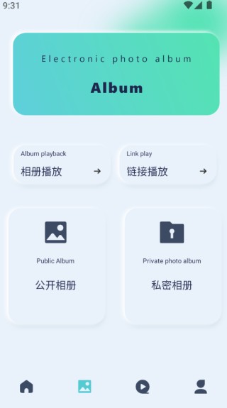 2、点击相册功能,支持相册播放、链接播放以及公开相册等操作,让查看和管理相片更加轻松。