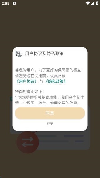 2、下载安装完成后,直接点击服务协议就可以进入应用界面。