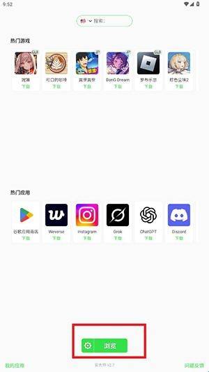 2、授权成功后,进入首页界面,点击下方的【浏览】按钮。