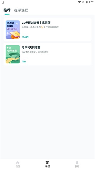 5、用户可以通过进入扇贝考研APP的【课程】页面,找到系统推荐的相关考研训练营。