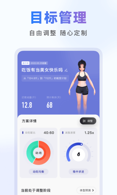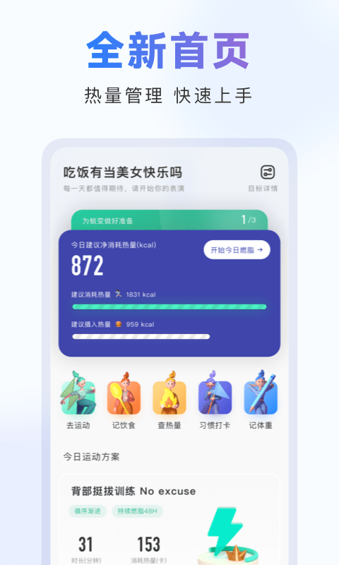 2、当燃每天只要按照提示按时完成任务,你就能逐渐实现减肥目标,变成完美的身材。